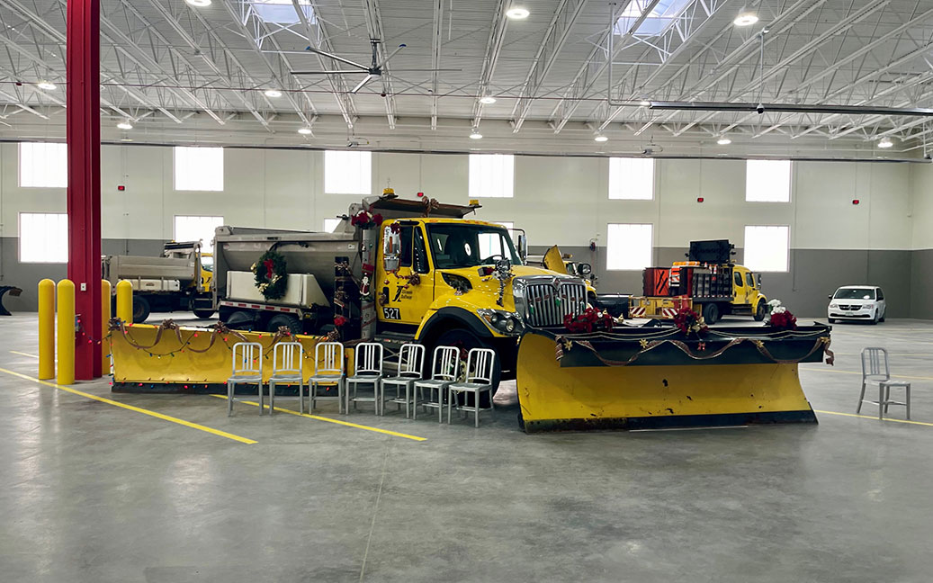 The Illinois Tollway M-16 Maintenance Facility is a new 95,797-square-foot maintenance facility on 5.7 acres located along the IL 390 Tollway in Bensenville. The Bensenville (M-16) maintenance facility building will serve as a fleet hub, maintenance garage and Illinois State Police office. Maintenance facilities provide indoor storage for materials and equipment and vehicles used by the Tollway for responding to roadway incidents, debris removal, snow removal, Highway Emergency Lane Patrols (H.E.L.P.), emergency repairs on the highway and general roadside maintenance. It provides an enclosed truck wash facility, as well as a salt dome, capable of holding 6,500 tons of salt. The facility operates 24 hours a day and seven days a week. The Bensenville (M-16) maintenance facility will house a staff of 20 roadway maintenance workers, as well as 12 plow trucks and other fleet vehicles. Sustainable elements in the Tollway maintenance facility include refueling equipment for low-emitting and fuel-efficient vehicles, installation of white TPO roof and concrete pavement with low reflectivity, reduction of light pollution with the installation of LED electronically programed exterior lighting and interior occupancy lighting and geofoam installation for ground stabilization and reduced loading. The buildings also incorporate photovoltaic panels to feed power back into the grid and electric vehicle charging stations. Skylights and punched openings in the precast wall panels use translucent, insulting glass and polycarbonate panels to provide abundant natural lighting. The use of in floor hydronic radiant heat and overhead natural gas radiant heat, along with installation of low-flow fixtures further reduce energy and water costs.