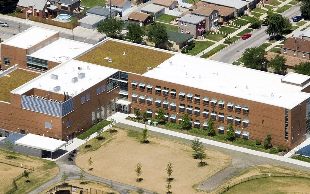 The Mariano Azuela Elementary School is located at 4707 West Marquette Road. This three story 105,000sf elementary school is designed for 900 students, ranging form Pre-K through 8th grade. This “L” shape prototypical design is constructed of steel frame and masonry.