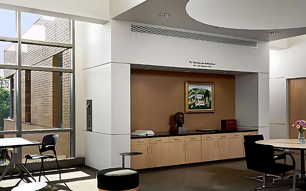 This new 41,000 square foot facility houses student gathering spaces and administrative and faculty offices functions on three floors. Located on the fourth side of a courtyard bounded on the other three sides by the Lutheran School of Theology, the building is intended to promote collaboration and resource sharing between the two institutions. A shared underground parking facility of 65,000 square feet serves as the base of the new facility and extends beneath the entire courtyard.